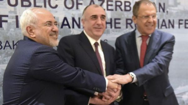 سرگی لاوروف (راست)، المار ممدیارف (وسط) و محمد جواد ظریفوزیر امور خارجه ایران دیروز نیز در کنفرانس خبری پس از گفتوگو با سرگی لاوروف و المار ممدیارف، وزرای خارجه روسیه و آذربایجان در باکو تاکید کرد که ایران به دنبال پس گرفتن جایگاه خود در بازار نفت است.