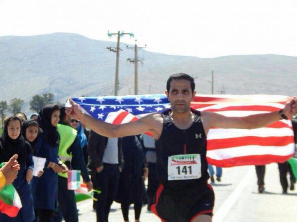 دونده مرندی با پرچم امریکا از خط پایان ماراتن "پارس" عبور کرد
