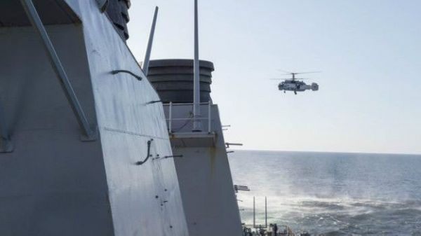روز بعد، یک هلی کوپتر کی‌ای-۲۷ روسیه در ارتفاع کم دور کشتی دور زد، و عبورهای تازه ای با جنگنده ها انجام شد.