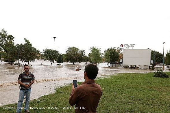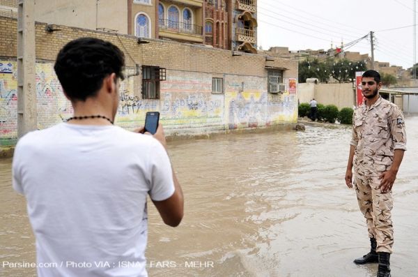 "تصاویری از رفتار متحیرگونه برخی هموطنان در مواجهه با سیل، بدبختی، خسارات مالی و....." البته اینکه روحیه خوب داشتن در چنین شرایطی بسیار عالی و بی نظیر است شکی نیست، اما محاسن و ویژگی ثبت عکس یادگاری همراه با لبخند در حادثه اینچنینی، جای تامل دارد.شاید مردمان خسته از هوای همواره آلوده و پُر ریزگرد جنوب و جنوب غربی کشور، با بارش رحمت الهی و سیرآب شدن موقت زمینهای تشنه این مناطق اندکی از دردهایشان التیام یافته، اما این پرسش همچنان نیاز پاسخ است که عکس یادگاری چه مزیت، فضیلت و یا حسنی دارد که از درک حداقل منِ نگارنده خارج است!