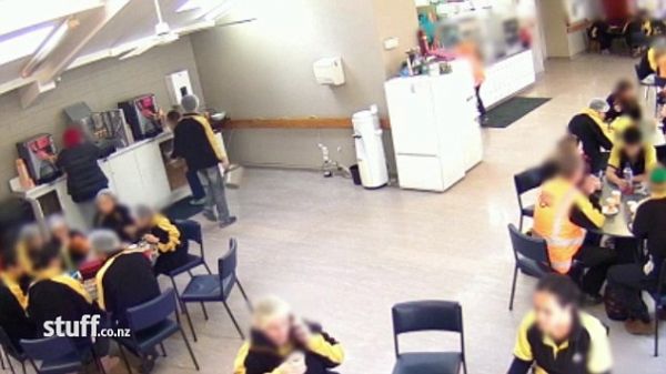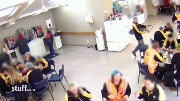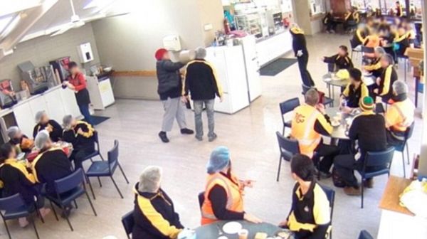 همکار دیگری که این صحنه را می بیند ظرف خالی را برداشته و با آن ضربه ای به سر «کیان وی شوز» زده و با او به جرو بحث می پردازد
