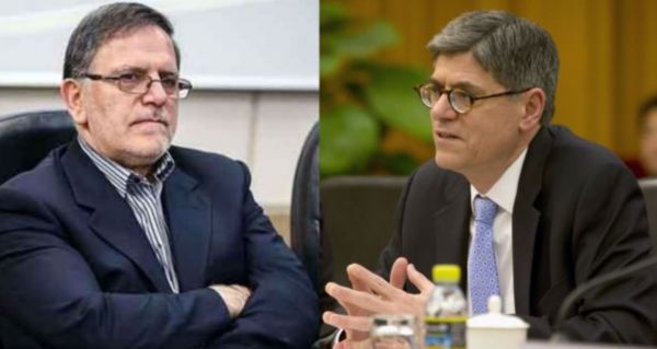 جک لو وزیر خزانه داری آمریکا و ولی الله سیف رئیس بانک مرکزی ایران.صدای آمریکا : رییس کل بانک مرکزی ایران که در واشنگتن به سر می برد، از ایالات متحده و اتحادیه اروپا برای پیوستن ایران به سیستم مالی دنیا کمک خواست. ایران می گوید برغم برداشتن تحریم های هسته ای، هنوز این کشور امکان بهره برداری از منابع مالی خود در خارج از کشور را ندارد.ولی الله سیف که برای شرکت در اجلاس بهاره بانک جهانی و صندوق بین المللی پول در راس هیاتی متشکل از معاونت های ارزی و اقتصادی این بانک به آمریکا آمده است، روز جمعه ۲۷ فروردین ماه، با حضور در شورای روابط خارجی آمریکا، موانع و مشکلاتی را شرح داد که در زمینه تجارت خارجی و سرمایه گذاری در ایران وجود دارد.