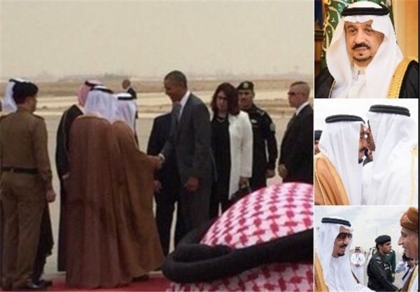 در حالیکه پادشاه عربستان از سران کشورهای عضو شورای همکاری خلیج فارس استقبال کرده است اما وی به استقبال رئیس جمهور آمریکا نرفت.به گزارش تسنیم، «باراک اوباما» رئیس جمهور آمریکا امروز با دعوت رسمی سلمان بن عبدالعزیز پادشاه سعودی وارد ریاض شد اما با استقبال وی پا به سرزمین آل سعود نگذاشت بلکه «فیصل بن بندر» فرماندار ریاض به استقبال وی رفت.