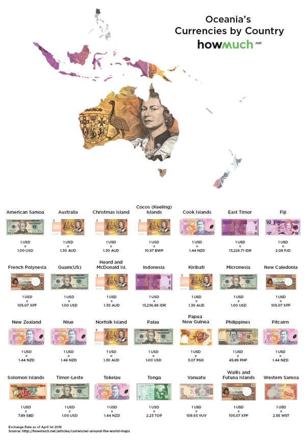 پلینزی فرانسه: ۱ دلار امریکا = ۱۰۵/۱ فرانک اقیانوسیه