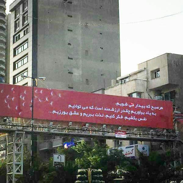 واقعا شعار مزخرفیه که خوش باشید که میتونید نفس بکشید و مهمتر اینکه فکر کنید !! من تعجب کردم که چطور عشق رو نوشتن . یه زمانی به زبون اوردن کلمه عشق بی تربیتی و کارهای خاک بر سری تلقی میشد .