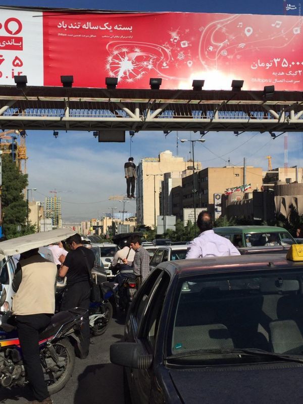 به گزارش جام جم آنلاین ،اینها جملات تابلویی است که امروز بر روی پل میرداماد نصب شده است .همان پلی که اخیرا مردی 65 ساله خود را از بالای آن حلق آویز کرده است .این عکس اکنون در فضای مجازی دست به دست می شود.