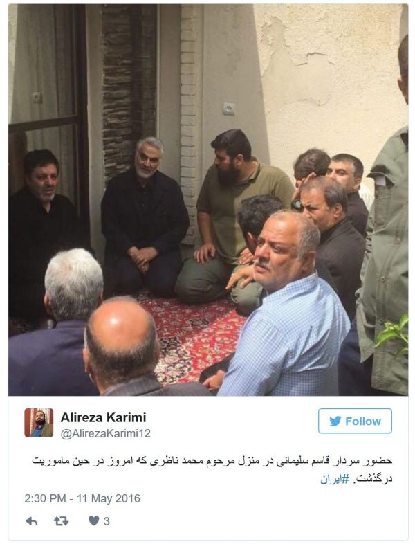 عکسی هم از آقای سلیمانی با لباس سراسر مشکی منتشر شده و از قول او عنوان شده که در سال ۱۳۵۸ "نیروی آموزشی" آقای ناظری بوده است.