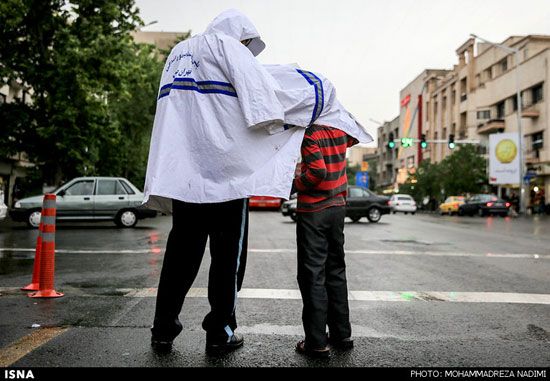 برنا قاسمی، عکاس ایسنا که اقدام به ثبت این تصویر کرده است در این‌باره گفت: روز چهارشنبه همزمان با بارش باران برای ثبت تصاویر باران بهاری به خیابان رفتم، در یکی از چهار‌راه‌های مشغول عکاسی بودم که در آن طرف خیابان چشمم به این مامور پلیس راهور افتاد، او بارانی‌اش را بالا زد و از کودک فال‌فروش خواست تا زیر آن بیاید. پسربچه فال‌فروش لباس مناسبی به تن نداشت و کمی هم خیس شده است.