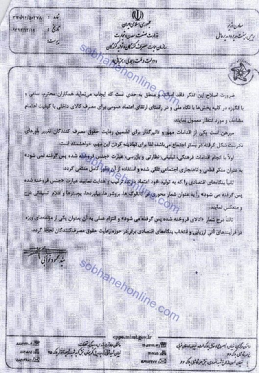 در این ابلاغیه سید محمود نوابی، با اشاره به اینکه عبارت “جنس فروخته شده، پس گرفته نمی شود” باور نادرستی است که ریشه در شرایط فرهنگی، اجتماعی و اقتصادی دارد، از این موضوع که طی سالهای اخیر توسط برخی بنگاههای اقتصادی مورد استفاده قرار می گیرد، اظهار تاسف شده است.