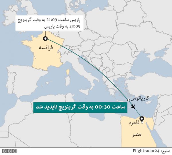 پرواز ام.اس. ۸۰۴ روز پنجشنبه (دیروز) با ۶۶ سرنشین از پاریس عازم قاهره بود که تنها دقایقی قبل از ورود به آسمان مصر از صفحه رادار محو شد.