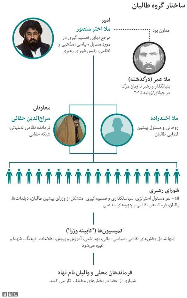 آن طور که گفته می‌شود ملا منصور (راست) بعد از مرگ ملا محمد عمر (چپ) رهبری طالبان را بر عهده گرفته بودوزارت دفاع آمریکا، پنتاگون طی بیانیه‌ای اعلام کرده طی یک حمله هوایی ملا منصور، جانشین ملا محمد عمر، رهبر سابق طالبان را هدف قرار داده است.