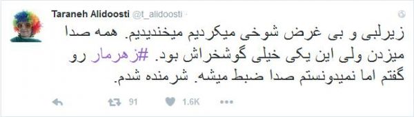 واکنش توییتری ترانه علیدوستی به «زهرمار» + عکس