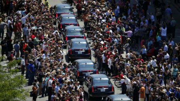 باراک اوباما رییس جمهور آمریکا به دلیل شرکت در مراسم فارغ‌التحصیلی دختر بزرگش نتوانست در مراسم شرکت کند اما در یک پیام ویدئویی، محمد علی را کسی خواند که "ذهن آمریکایی‌های آفریقایی تبار را آزاد کرد تا بتوانند به آنچه هستند افتخار کنند."