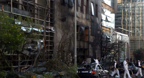 صحنه‌ای از خسارت وارده به بانک بلوم در نتیجه انفجار یکشنبه‌شب.انفجار بمبی  شامگاه یکشنبه ۲۳ خرداد یکی از ساختمان‌های بانک لبنان و المهجر (بلوم) را در مرکز بیروت پایتخت لبنان هدف قرار داد.