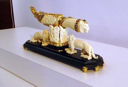 در ساخت این خنجر از عاج فیل و طلای ناب استفاده شده و غلاف آن مملو از سنگ های قیمتی چون زمرد و یاقوت است.