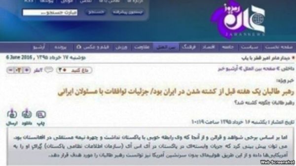 این سایت روز ۱۸ خرداد در گزارشی دیگر خبر داده بود که ملا اختر منصور، رهبر سابق طالبان، یک هفته پیش از کشته شدن، «به مدت دو ماه در ایران حضور داشته و مذاکرات متنوعی با نهادها و دستگاههای مختلف انجام داده است».