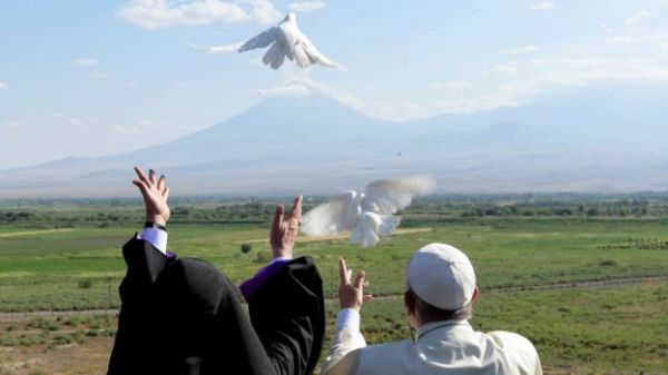 پاپ و کاتولیکوس کارکین دوم در نزدیکی کوه آرارات کبوتر صلح رها کردند ۷۷
