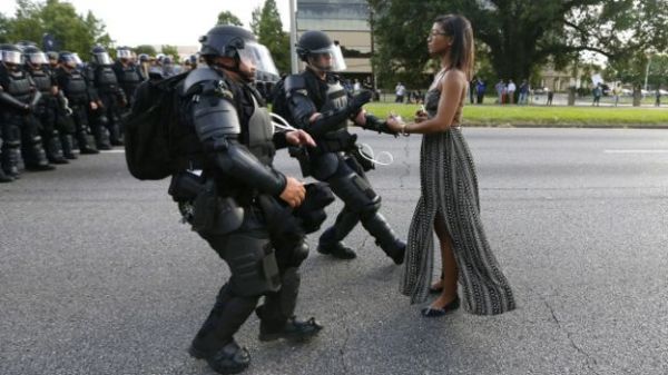 رویارویی یک معترض با ماموران پلیس در بتان روژ