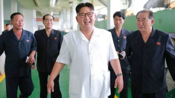 کیم که در این تصویر دارد از یک کارخانه چرم مصنوعی دیدن می‌کند حالا باید برای خرید ساعت جای دیگری پیدا کند به نظر می‌رسد علاقه کیم جونگ اون، رهبر کره شمالی، به ساعت‌های گران‌قیمت سوئیسی به دیوار بلند تحریم‌های سازمان ملل متحد برخورد کرده است.