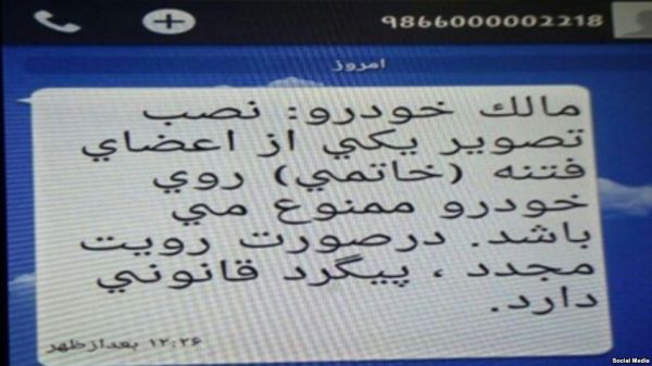 براساس این گزارش این وب‌سایت در روز پنج شنبه، ۷ مرداد، در این پیامک اعلام شده که «نصب تصویر یکی از اعضای فتنه(خاتمی)روی خودرو ممنوع است و در صورت رویت مجدد پیگرد قانونی دارد».