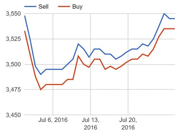 به گزارش ایسنا، دلار آمریکا در آخرین روز هفته اخیر (پنجشنبه) با ادامه روند افزایشی خود به ۳۵۳۴ تومان رسید و سکه تمام طرح جدید نیز یک میلیون و ۱۱۱ هزار و ۷۰۰ تومان فروخته شد که بیش از ۲۱ هزار تومان نسبت به روز قبلش افزایش قیمت داشت. همچنین هر گرم طلای ۱۸ عیار بیش از ۱۱۳ هزار تومان فروخته شد و نیم سکه و ربع سکه به ترتیب با قیمت‌های ۵۵۵ و ۲۸۵ هزار تومان هفته را به پایان رساندند.