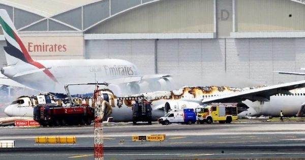 این هواپیما پس از نشست اضطراری دچار آتشسوزی شد. به گزارش خبرگزاری رویترز بر فراز محل فرود هواپیما دود سیاهی به چشم میخورد. مقامات فرودگاه دبی اعلام کردند که همه ۲۷۵ سرنشین و کلیه خدمه این هواپیما سالم هستند.