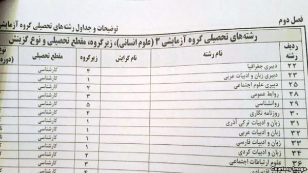 خبرگزاری دولتی ایرنا روز شنبه ۲۳ مرداد به نقل از حسین توکلی مشاور عالی سازمان سنجش و آموزش کشور، نوشت که امکان انتخاب رشته داوطلبان برای ثبت‌نام در رشته‌های تحصیلی «زبان و ادبیات ترکی»، و «زبان و ادبیات کردی» فراهم شده، و داوطلبان می‌توانند در این رشته‌ها» در مقطع کارشناسی و نوع گزینش سراسری» ثبت‌نام کنند.