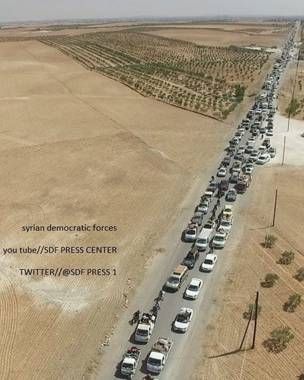 نیروهای دموکراتیک سوریه که موفق شدند هفته گذشته شهر منبج را از نیروهای موسوم به گروه دولت اسلامی (داعش) پس بگیرند، تصاویری را منتشر کردهاند که نشان میدهد اعضای گروه داعش به هنگام فرار از این شهر از غیرنظامیان به عنوان سپر انسانی استفاده کردند.نیروهای دموکراتیک سوریه گفتهاند این تصاویر، که کاروانی حامل صدها خوردو را نشان میدهد، روز جمعه ۱۹ اوت (۲۹ مرداد) گرفته شده است.