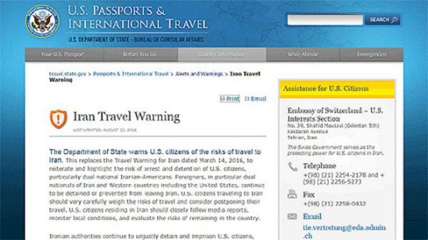 مخالفان سیاست دولت آمریکا در قبال ایران از "باجدهی" برای آزادی ایرانی تباران زندانی انتقاد کردهاند اطلاعیه جدید وزارت خارجه همچنین در مورد استفاده از حریم هوایی ایران هشدار داده و گفته است که "دولت ایالات متحده به دلیل مخاطرات ناشی از عملیات نظامی مرتبط با درگیری در عراق و سوریه، در مورد خطراتی که پرواز ورودی، خروجی و بر فراز ایران را تهدید میکند نگران است." این اطلاعیه میافزاید که سازمان هواپیمایی آمریکا از شرکتهای هواپیمایی خواسته است برای کسب اطلاعات بیشتر در این مورد به اطلاعیههای این سازمان مراجعه کنند.اخیرا یک نشریه آمریکایی گزارش کرد که دولت آمریکا در قبال آزادی چند ایرانی دارای تابعیت دوگانه از زندانهای جمهوری اسلامی، مبلغ چهارصد میلیون دلار پول نقد را به تهران فرستاده است. انتشار این خبر با واکنش تند منتقدان سیاست دولت آمریکا در قبال ایران، از جمله نامزد حزب جمهوریخواه در انتخابات ریاست جمهوری مواجه شد که دولت ایران را "گروگانگیر" خوانده و دولت آمریکا را به باجدهی به گروگانگیرها متهم کردند. به گفته آنان، این اقدام میتواند "گروگانگیری" را به محلی برای کسب درآمد یا ابزاری در سیاست خارجی جمهوری اسلامی ایران تبدیل کند. مقامات آمریکایی گفتهاند برای آزادی شهروندان آن کشور در ایران، به دولت جمهوری اسلامی باج ندادهاند.