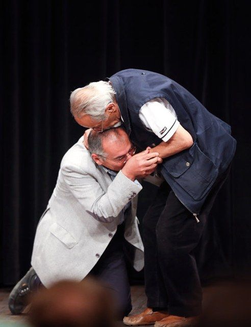 بوسه صادق زیباکلام بر دست بازیگر پشیمان از بازی در سریال معمای شاه