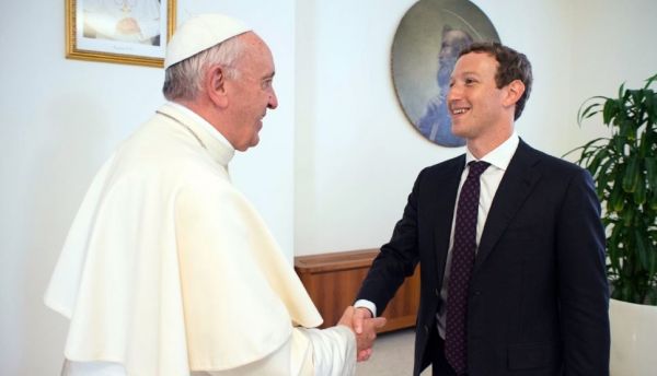دیدار مارک زاکربرگ، بنیانگذار فیسبوک، با پاپ فرانسیس، رهبر کاتولیکهای جهان، در رم مارک زاکربرگ بنیانگذار و مدیرعامل فیسبوک به همراه همسرش روز دوشنبه با پاپ فرانسیس رهبر کاتولیک های جهان در واتیکان ملاقات کردند.