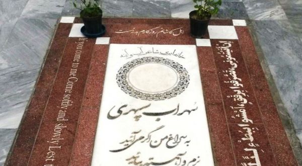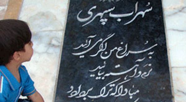 «به سراغ من اگر می آیید، نرم و آهسته بیایید، مبادا که ترک بردارد چینی نازک تنهایی من»؛ این شعری است که ترجمه آن روی سنگ قبر سهراب سپهری نوشته شده است .