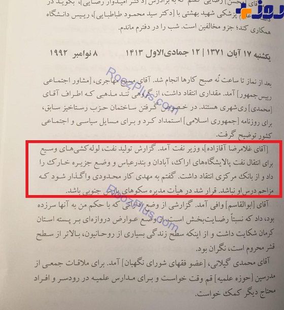 سایت خبری رورپلاس نوشت، بخشی از خاطرات آیت الله هاشمی در تاریخ ۱۷ آبان ۱۳۷۱ را میخوانید: