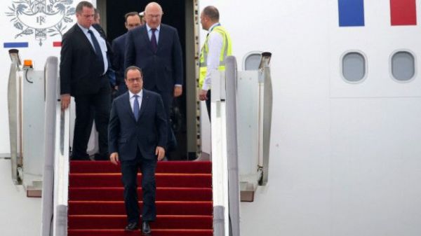 تصاویری که از سران کشورهای آلمان، فرانسه و ژاپن پخش شده نشان میدهد همه مقامها از در بزرگ هواپیما و با فرش قرمز وارد فرودگاه شدهاند.