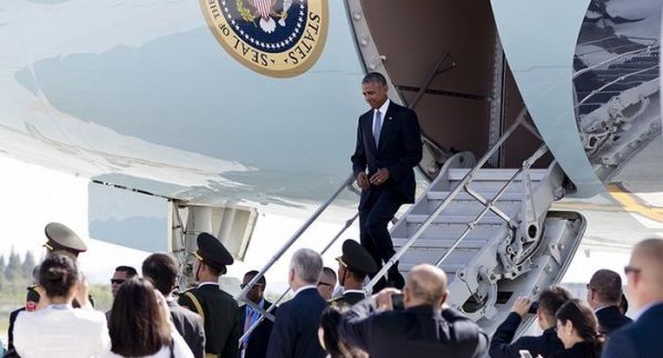 آقای اوباما از پلههایی پایین آمد که فرش قرمز روی آن نبود فرود خبرساز باراک اوباما