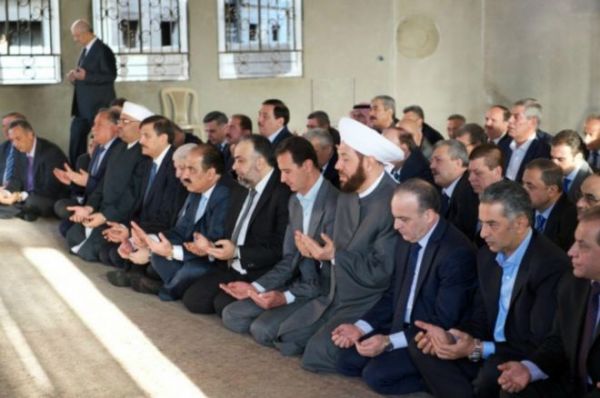 بشار اسد در حال ادای نماز عید قربان در داریا، حومه دمشق بشار اسد، رئیس جمهور سوریه میگوید که دولت این کشور "متعهد" است که تمام سوریه را از شورشیان پس بگیرد و آن را "بازسازی" کند.اظهارات رئیس جمهور سوریه ساعاتی پیش از برقراری آتشبس پیشنهادی آمریکا و روسیه بیان شد. این آتشبس از ساعت ۱۵:۴۵ به وقت بینالمللی، ۱۹:۱۵به وقت تهران و کابل آغاز شده است.