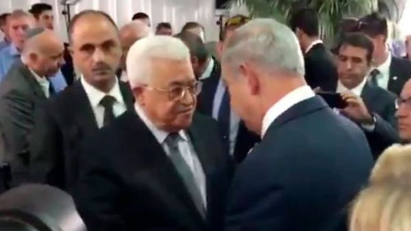 محمود عباس با بنیامین نتانیاهو دست داد تشییع جنازه شیمون پرز، رئیس جمهور پیشین اسرائیل، با حضور شماری از رهبران جهان در بیتالمقدس برگزار شد. بنیامین نتانیاهو در این مراسم "بصیرت و امید" شیمون پرز را ستود و او را یکی از مردان بزرگ اسرائیل و جهان خواند.حدود ٧٠ کشور نمایندگانی به این مراسم فرستادند، نمایندگان چند کشور عربی هم در مراسم حاضر بودند.