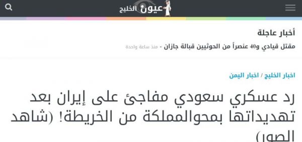 آخرین نیوز: وبسایت خبری "عیون الخلیج" گزارش داد: «عربستان سعودی پاسخ ایران -که اخیرا عربستان را به محو از نقشه جهان تهدید کرده بود- را طی اقدام نظامی غافلگیر کننده ای در تنگه هرمز خواهد داد.»منبع مذکور در ادامه خاطر نشان کرد: «عربستان قصد دارد تا تمرین نظامی را این هفته در آب های خلیج[فارس] با هدف حمایت از گذرگاه های راهبردی در این آب ها برگزار کند.»