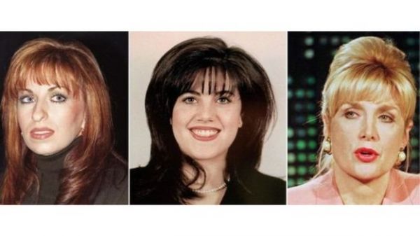 از راست: جنیفرفلاورز، مونیکا لوینسکی و پائولا جونز اوایل سال جاری میلادی، دونالد ترامپ مدعی شد که هیلاری کلینتون به نوعی در 'خیانت‌های' بیل کلینتون مقصر بوده. ترامپ گفت هیلاری "به زنانی که بیل کلینتون با آنها بدرفتاری کرده بود، حمله کرد" و با رفتارش این ماجرا را "میسر" کرد.