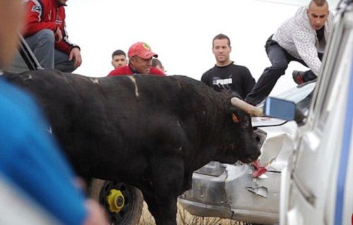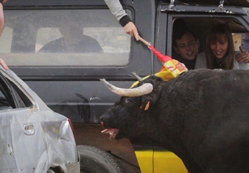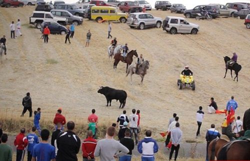 در این رسم مردم اسپانیا، شهروندان عادی و گاوبازها در اطراف گاو و در محلی که تعبیه شده است، روی ماشینها میایستند و گاو در وسط این ماشینها رها میشود و بعد با ماشین به دنبال گاو میروند.