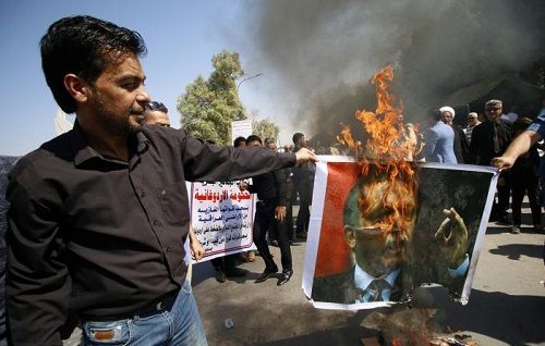 آتش زدن عکس اردوغان در بصره+تصاویر