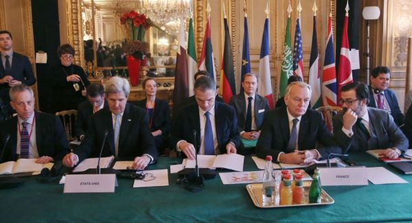 نشست پاریس با شرکت حامیان شماری از شورشیان و مخالفان بشار اسد برپا شده بود. وزیران خارجه آمریکا، بریتانیا، آلمان، ترکیه و قطر، فدریکا موگرینی از اتحادیه اروپا و نمایندگانی از ایتالیا، عربستان سعودی و امارات متحده و نیز ریاض حجاب، نماینده اپوزیسیون سوریه، در آن حضور داشتند.