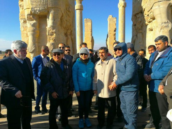 ایلنا نوشت: محمود احمدینژاد که برای شرکت در مراسم میلاد حضرت زینب در حسینیه علی ابن موسی الرضا شیراز به این شهر سفر کرده است، صبح امروز از مجموعه تاریخی تخت جمشید بازدید و با برخی از گردشگران داخلی و خارجی نیز عکس یادگاری گرفت.