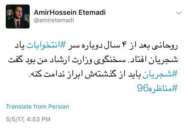 گزیدهای از توییتهای کاربران توییتر فارسی در ارتباط با مناظره دوم کاندیداهای ریاست جمهوری اسلامی