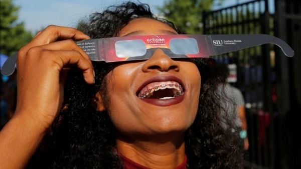 نمایی از کسوف یا خورشیدگرفتگی تاریخی در آمریکااز اورگون تا کارولینای جنوبی، از ساحل شرقی تا ساحل غربی آمریکا، مردم با عینک مخصوص و دوربین، چشم به آسمان دوختهاند و کسوف کامل را تماشا میکنند.تقریبا یک قرن است (از ۱۹۱۸) که مردم آمریکا شاهد این نبودهاند که از این سو تا آن سوی کشور شاهد خورشیدگرفتگی کامل باشد. علاوه بر این این نخستین باز از زمان استقلال آمریکا در ۱۷۷۶ است که خورشیدگرفتگی کامل منحصرا خاک آمریکا را از نور خورشید محروم میکند.