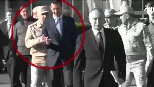 پس از این فرد نظامی روس، بازوی بشار اسد را در حضور همگان کشید، رئیسجمهوری سوریه سر خود را به علامت موافقت تکان داد تا رئیسجمهوری روسیه به تنهایی در مراسم استقبال رسمی که از سوی نظامیان روس حاضر در سوریه انجام شد، حاضر شود.