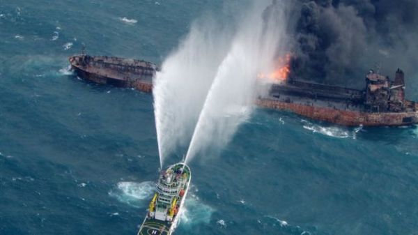 طبق گزارشهای رسمی، کشتی نفتکش سانچی روز ۱۶ دیماه ( ۶ ژانویه) هنگام عبور از نزدیکی سواحل شرقی جمهوری خلق چین در تصادف با یک بارکش چینی آسیب جدی دید و دستخوش آتش سوزی شد. این کشتی ۳۲ سرنشین داشت که ۳۰ تن از آنان ایرانی و دو نفر دیگر از شهروندان بنگلادش بودند. این کشتی سرانجام روز ۲۴ دی غرق شد و تمامی سرنشینان آن جان خود را از دست دادند.