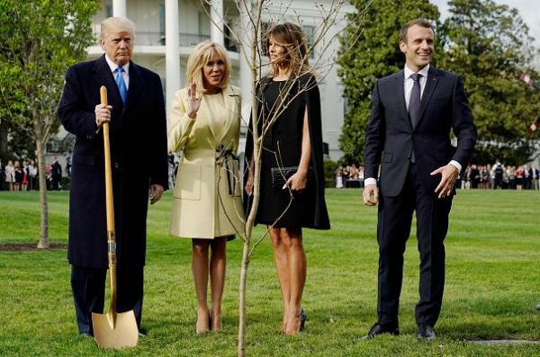 روسای جمهور دو کشور سپس در باغ کاخ سفید یک اصله نهال بلوط را که امانوئل ماکرون به دونالد ترامپ هدیه داده بود غرس کردند. این نهال از محل نبرد «بلو وودز» در شمال فرانسه به آمریکا انتقال یافت. در جریان جنگ جهانی اول حدود ۹ هزار سرباز آمریکایی در این نبرد کشته شدند.
