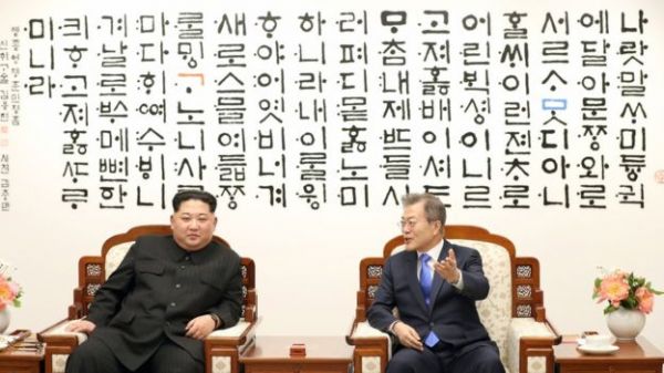 گفتگوهای مون و کیم با اعلام غیراتمی شبهجزیره کره و آمادگی برای امضای معاهده صلح به نشست یک روزه خود پایان دادند جنگ کره در سال ۱۹۵۰ با حمله نیروهای کره شمالی به کره جنوبی آغاز شد و در حالیکه شوروی سابق و چین از کره شمالی حمایت میکردند، یک ائتلاف بینالمللی به رهبری آمریکا برای کمک به کره جنوبی وارد جنگ شد. جنگ کره همراه با تلفات سنگین به هر دو طرف تا سال ۱۹۵۳ و توافق ترک مخاصمه ادامه داشت اما هنوز کره جنوبی و آمریکا با کره شمالی معاهده صلح امضا نکردهاند و حکومت کره شمالی را به رسمیت نمی شناسند. حکومت کره شمالی بر اساس این نظر که "به عنوان تنها نظام سیاسی مستقل جهان" با خطر تهاجم آمریکا و کره جنوبی مواجه است، در برخورداری از امکانات اقتصادی، برای ارتش و برنامههای نظامی و تسلیحاتی اولویت قایل شده است.چند هفته پیش رهبر کره شمالی در سفر به چین گفت که سیاست کلی او غیر اتمی شدن شبهجزیره کره است و افزود که در صورتی که کره شمالی احساس امنیت کند، به تسلیحات اتمی نیازی نخواهد داشت.