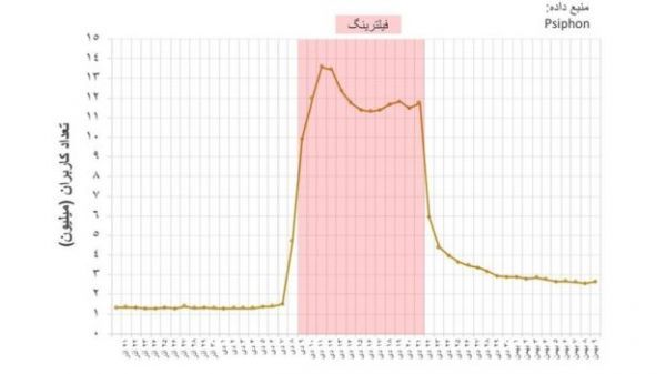 میزان تولید محتوا و بازدید در کانالهای عمومی تلگرام از آذر ۱۳۹۶ تا اردیبهشت ۱۳۹۷ دیروز هم بازدید از کانالهای عمومی تلگرام حدود ۱.۱ میلیون بار بوده که نسبت به روز قبل از فیلترینگ، حدود ۴۰ درصد کمتر شده است.با وجود تصور غالب در مورد پیچیده بودن نصب و استفاده از ویپیان برای بسیاری از کاربران تلگرام، تحلیل دادههای کاربران در ایران نشان میدهد که بسیاری از مشترکان جدید سایفون، جزو کاربران به اصطلاح غیرحرفهای اینترنت به حساب میآیند.